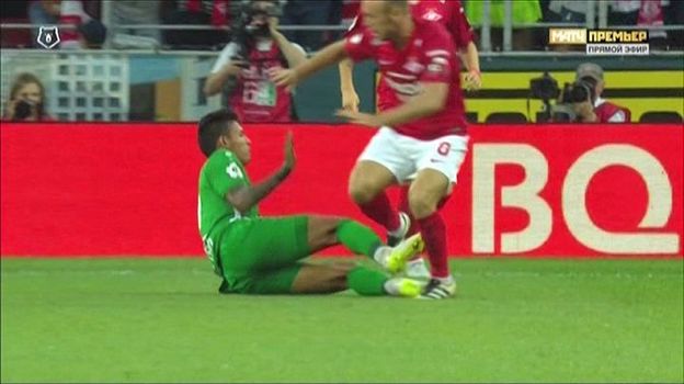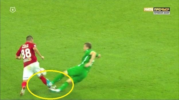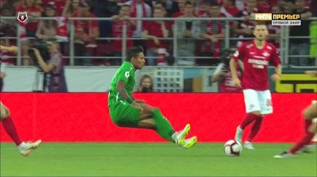 На 49-й минуте судья поступил абсолютно верно, показав красную карточку Понсе. Футболист "Анжи" совершил прыжок двумя ногами вперед в направлении Глушакова и ударил спартаковца, рискуя нанести ему травму. Такой фол по правилам карается удалением. Другого вердикта рефери быть не может.