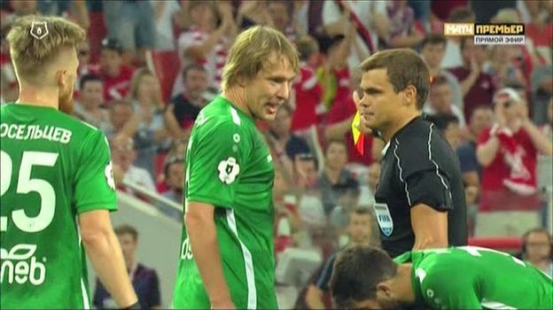 На 90+2-й минуте судья имел все основания зажечь красный свет перед Гапоном, который прямой ногой ударил сзади спартаковца Ташаева. Но Левников ограничился желтой карточкой. Почему? Возможно, находясь далеко от места событий, не видел деталей единоборства. А первый ассистент Алексей Воронцов подсказал, что достаточно предупреждения.