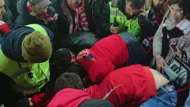 – Мужчина вновь развернул шарф. В последующие пять минут фанаты переругивались друг с другом.