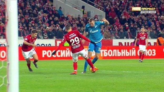 На 59-й минуте Москалев допустил серьезную ошибку, не назначив пенальти в ворота хозяев поля. Судья неверно оценил единоборство защитника красно-белых Ильи Кутепова с Артемом Дзюбой. Спартаковец поставил сопернику "шлагбаум", сделав движение правой ногой и сбив нападающего. Однако судья продолжил игру.