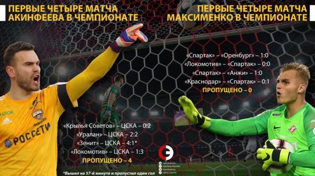 Больше 15 лет прошло! Вот так и понимаешь, как летит время… В первых четырех матчах премьер-лиги Акинфеев пропустил четыре мяча. Максименко – ни одного. Но у Игоря соперники были куда серьезнее: "Локомотив", "Зенит", "Крылья Советов" и "Уралан", с которым ЦСКА сыграл вничью. В Питере был вообще разгром, но из четырех мячей Акинфеев пропустил лишь один – вышел на замену.
