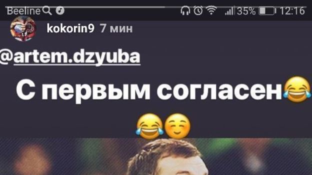 "Дзюба – крохобор, он не достоин игры в сборной России". С первым согласен. Со вторым – нет, – написал Кокорин в Инстаграме.