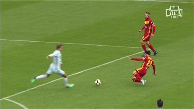 На 33-й минуте матча Москалев ошибочно не вынес предупреждение Горбатенко. Для игрока хозяев оно стало бы вторым, и ему пришлось бы покинуть поле. В том эпизоде Горбатенко прыгнул в направлении Кришито, выставив прямую ногу, и нарушил правила в единоборстве с зенитовцем. Судья определил фол, но ограничился назначением штрафного удара. При этом во втором тайме в менее очевидной ситуации Москалев все-таки наказал Горбатенко второй желтой карточкой.