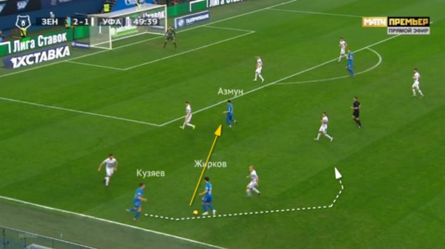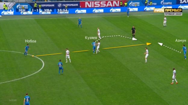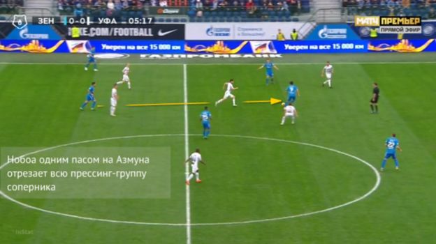 Возвращение эквадорца в старт против "Уфы" позволил "Зениту" провести лучшую игру в позиционной атаке после возобновления сезона. Питерцы гораздо лучше продвигали мяч в финальную треть. "Уфа"пыталась блокировать линию передач количеством, но это было бесполезно. Нобоа двигал игру к чужим воротам даже через мельчайшие щели, которые образовывались за счет движения Кузяева и Ригони, а также отходящего вглубь Азмуна.