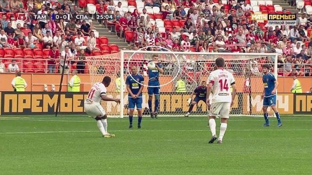 На 29-й минуте тамбовская команда открыла счет после удара Гогуа. Второй ассистент Николай Богач поначалу сигнализировал об офсайде, однако затем свое решение изменил.