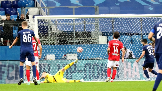 Нет смысла обсуждать пенальти. Отмечу спасение Гойло на 70-й минуте. Зобнин бил с угла штрафной с правой ноги в дальний угол. У голкипера была хорошая позиция. И он прыгал не параллельно линии ворот, а вперед, сокращая тем самым время и расстояние до пересечения с мячом. Удар наносился в принципе на удобной высоте, однако стоит признать, что Никита хорошо толкнулся, вытянулся в струнку и вытянутой рукой отбил мяч на угловой. Динамичный момент, красивое спасение.
