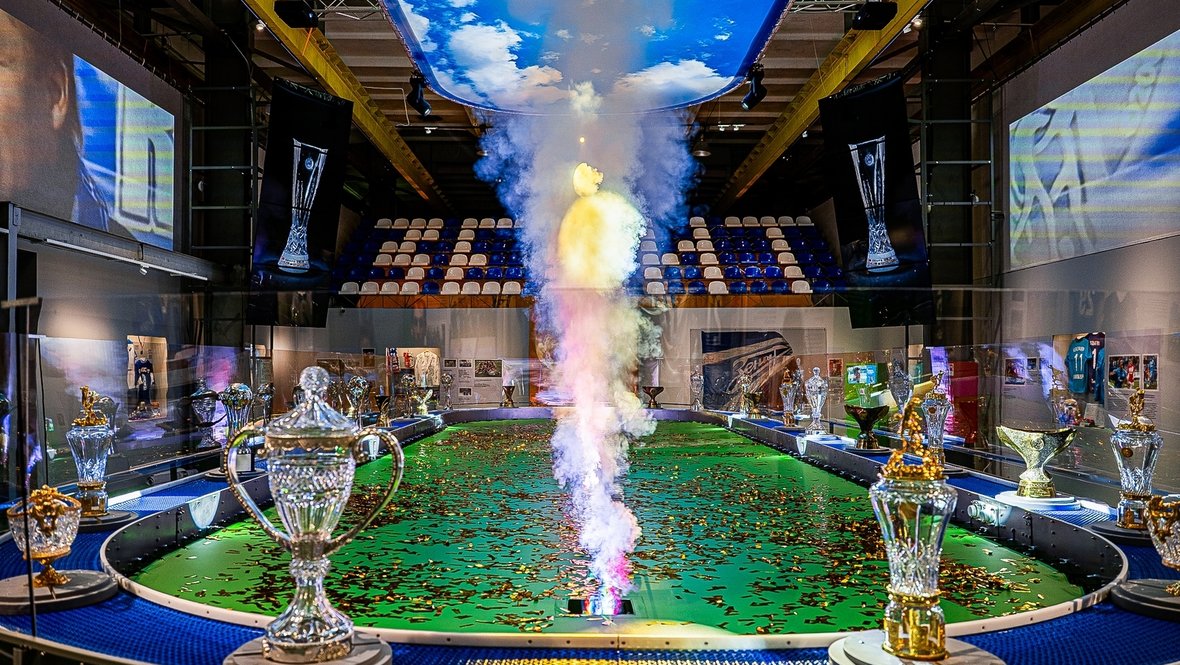 А потом уже — большой парадный победный зал. Например, с белым пиджаком Сергея Фурсенко, расписанным обладателями Кубка УЕФА-2008, с зенитовской футболкой Шкртела, на которой фамилия будущего защитника «Ливерпуля» экзотично написана через «э» — Шкртэл; с бутсами Ширла, чей удар вместе с прыжком Домингеса принес «Зениту» в 2007-м первое российское золото. С отпечатками стоп Аршавина и Кержакова и кучей всего другого.