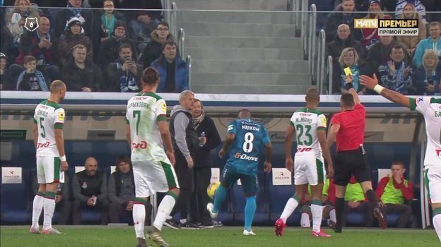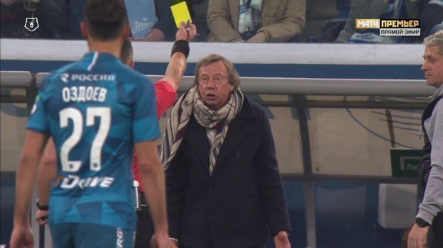 В течение примерно девяти минут первого тайма главный тренер гостей получил две желтые карточки и покинул техническую зону.