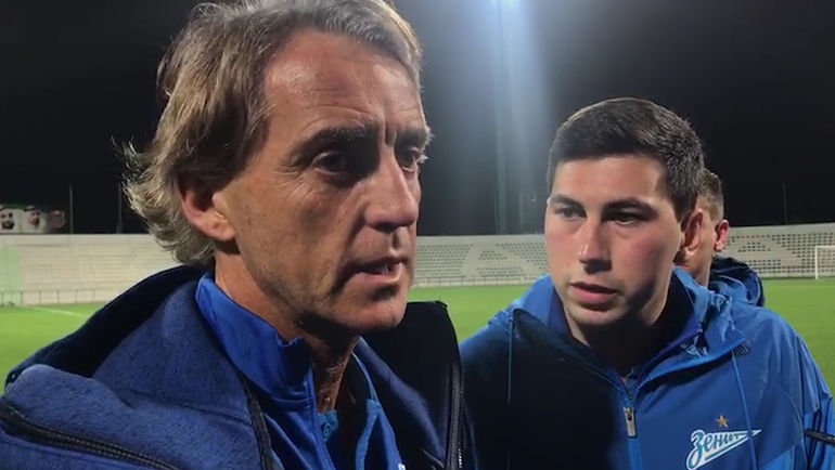 Главный тренер "Зенита" Роберто Манчини - о первой игре на зимних сборах в Дубае, против "Копенгагена" (5:0). Дубль оформил Андрей Панюков, по мячу забили Антон Заболотный, Маттиас Краневиттер и Александр Кокорин.