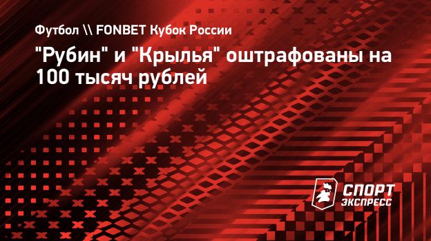 "Рубин" и "Крылья" оштрафованы на 100 тысяч рублей