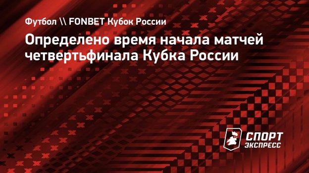 Стало известно время начала матчей четвертьфинала Кубка России.