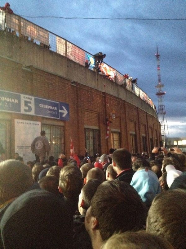 Вопреки заявлениям главы УМВД по Ярославской области Николая Трифонова, который утверждает, что болельщики "Спартака" на вчерашний матч 1/16 финала Кубка России с "Шинником" (1:0) проносили файеры "в интимных местах", в социальной сети "ВКонтакте" появилась фотография, на которой четко видно, каким образом большинство пиротехнических изделий попало на ярославский стадион. В частности, на снимке видно, что красно-белые передавали файеры через стену.