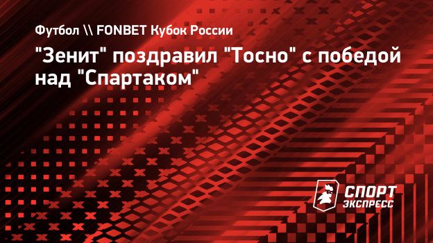 Пресс-служба "Зенита" поздравила "Тосно" с победой в матче 1/8 финала Кубка России со "Спартаком" в Москве, разместив сообщение в официальном твиттере клуба из Санкт-Петербурга. Особенные поздравления сине-бело-голубые адресовали автору победного гола Валентину Филатову, который с 2002 по 2004 год выступал за "Зенит".