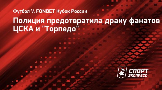 Полиция предотвратила драку фанатов ЦСКА и "Торпедо" возле стадиона "Труд" в Подольске, информирует ТАСС. Группа болельщиков армейцев из 10 человек предприняла попытку спровоцировать столкновение недалеко от выхода с сектора, на котором располагались фанаты черно-белых. Ситуация была урегулирована после вмешательства конной полиции.