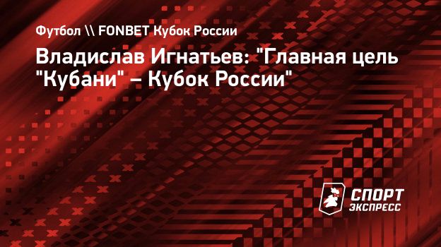 Владислав Игнатьев: "Главная цель "Кубани" – Кубок России"