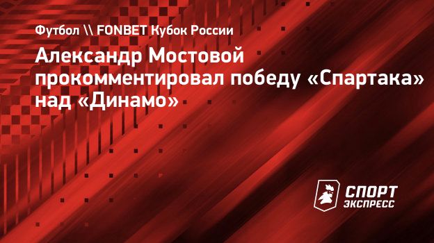 Бывший футболист «Спартака» Александр Мостовой прокомментировал победу красно-белых над «Динамо» (3:2) в матче 5-го тура группового этапа Пути РПЛ FONBET Кубка России.