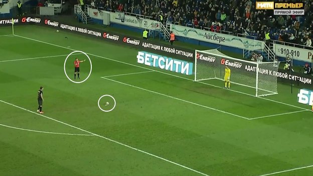 Во-вторых, не все игроки, выполнявшие пенальти, устанавливали мяч точно по центру 11-метровой отметки. Некоторые сдвигали его на край, но при этом он касался своей проекцией части «точки». Безбородов не заставлял их поправлять мяч. Прав ли он?