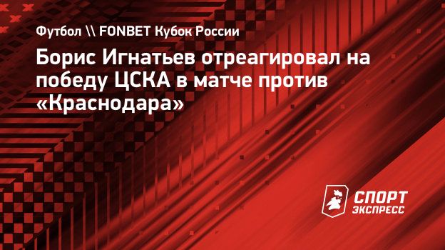Бывший главный тренер сборной России Борис Игнатьев отреагировал на победу ЦСКА в первом матче четвертьфинала FONBET Кубка России против «Краснодара» (3:0).