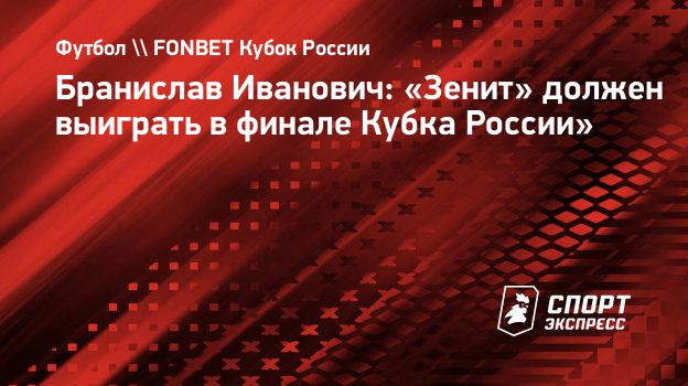 Бранислав Иванович: «Зенит» должен выиграть в финале Кубка России»