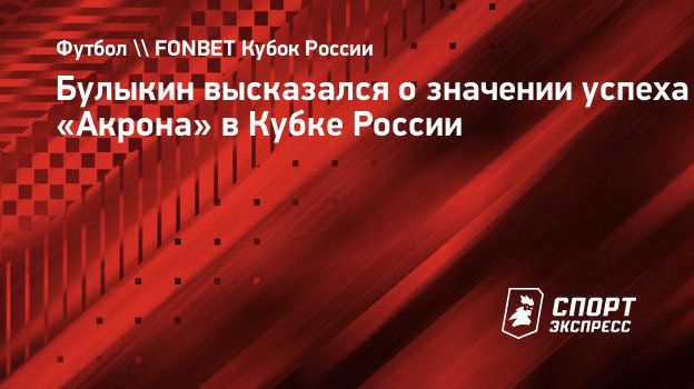 Булыкин высказался о значении успеха «Акрона» в Кубке России