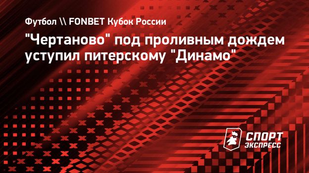 Матч 1/32 финала Кубка России между "Чертаново" и питерским "Динамо" завершился со счетом 2:0 в пользу гостей. Отметим, что на 60-й минуте встречи начался проливной дождь, который продолжался вплоть до финального свистка.