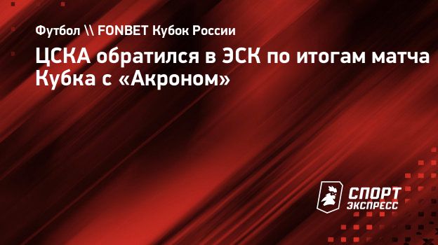 ЦСКА обратился в ЭСК по итогам матча Кубка с «Акроном»