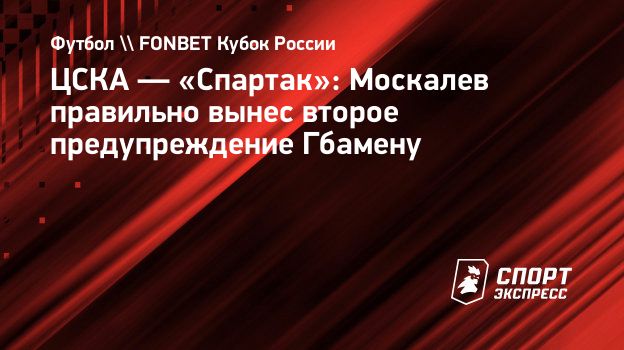 В конце первого тайма матча 1/4 финала БЕТСИТИ Кубка России ЦСКА — «Спартак» арбитр Владимир Москалев правильно вынес предупреждение полузащитнику красно-синих Жан-Филиппу Гбамену, который в верховом единоборстве попал рукой в лицо Роману Зобнину. Для футболиста ЦСКА эта желтая карточка стала второй в игре — ему пришлось покинуть поле.