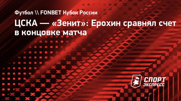 ЦСКА — «Зенит»: Ерохин сравнял счет в концовке матча