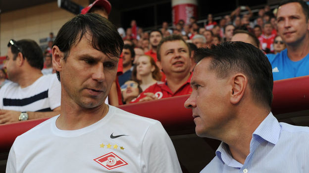 31 июля 2016 года. Москва. "Спартак" - "Арсенал" - 4:0. Егор Титов (слева) - ассистент Дмитрия Аленичева - вышел на первый матч чемпионата-2016/17 в майке с неправильным ромбом. Фото Александр Федоров, "СЭ"