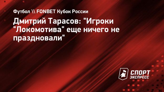 Полузащитник "Локомотива" Дмитрий Тарасов в интервью "Известиям" отметил, что игроки не праздновали пока победу в Олимп-Кубке России. В среду красно-зеленые в финале выиграли у "Урала" (1:0).