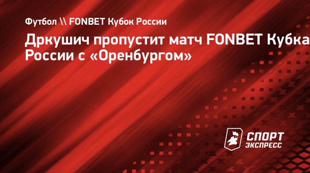 Дркушич пропустит матч FONBET Кубка России с «Оренбургом»