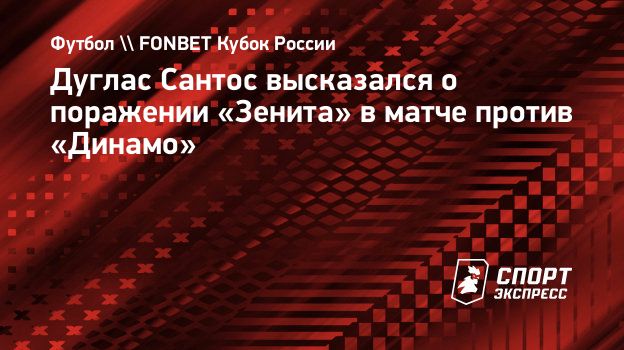Защитник «Зенита» Дуглас Сантос высказался о поражении своей команды в матче 1/4 финала Пути регионов FONBET Кубка России против «Динамо» (1:1, пенальти — 4:5).
