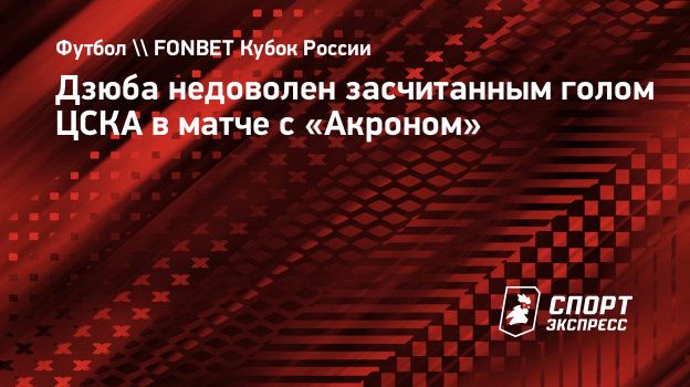 Нападающий «Акрона» Артем Дзюба выразил недовольство засчитанным голом ЦСКА в матче против тольяттинцев в 6-м туре группового турнира пути РПЛ FONBET Кубка России.