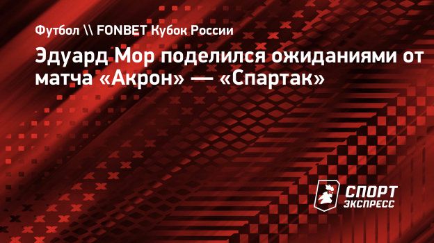 «Спартаку» предстоит сыграть с «Акроном» на искусственном поле. Не знаю, какого оно качества. Свой проход команда заслужила и уже прыгнула выше головы. Последние две игры в первой лиге «Акрон» сыграл вничью, и я думаю, что «Спартак» настроится на эту встречу максимально. Для «Спартака» сейчас Кубок — это самое главное, что может быть. Так что нет смысла беречь силы и ротировать состав, к тому же в строй скоро вернутся травмированные Мозес, Промес и Хлусевич, то есть выбор исполнителей на оставшуюся часть сезона будет", — приводит слова Мора «РБ Спорт».