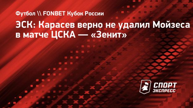 ЭСК: Карасев верно не удалил Мойзеса в матче ЦСКА — «Зенит»