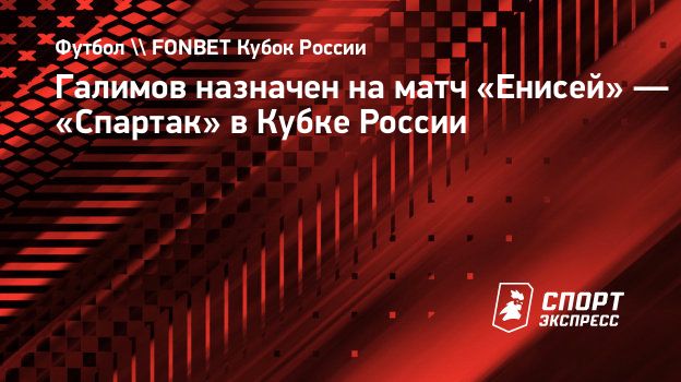 Галимов назначен на матч «Енисей» — «Спартак» в Кубке России