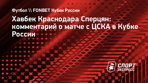 Полузащитник «Краснодара» Эдуард Сперцян прокомментировал поражение от ЦСКА (0:2) в матче Пути РПЛ FONBET Кубка России.