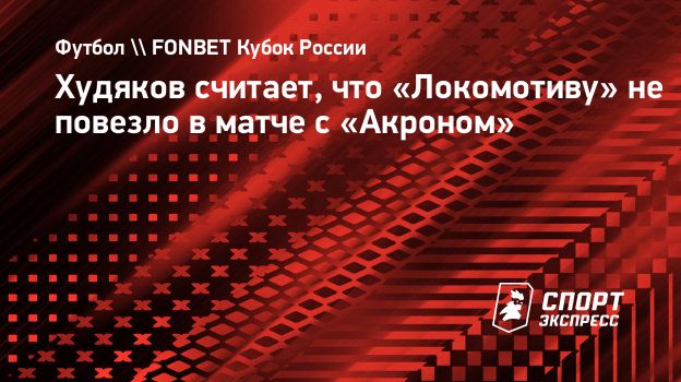 Худяков считает, что «Локомотиву» не повезло в матче с «Акроном»