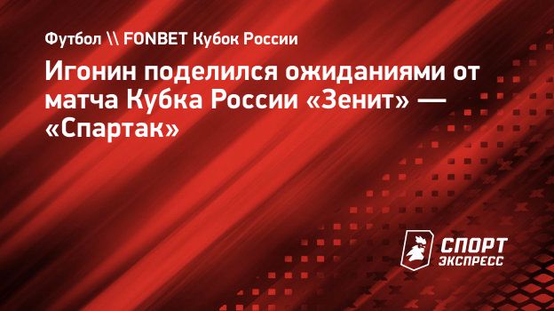 Бывший полузащитник «Зенита» Алексей Игонин поделился с «СЭ» ожиданиями от предстоящего матча Кубка России между командой из Санкт-Петербурга и «Спартаком».