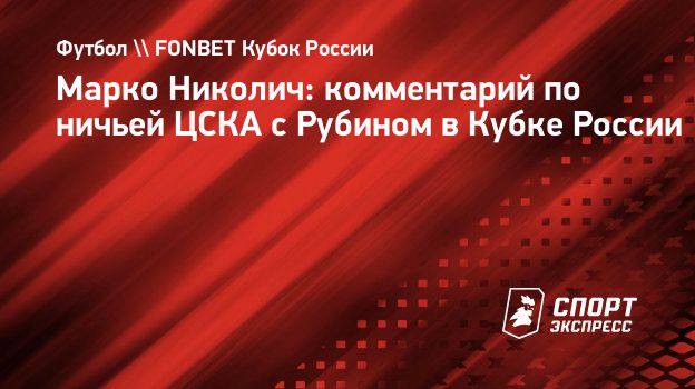 Главный тренер ЦСКА Марко Николич прокомментировал ничью с «Рубином» (0:0) в первом матче 1/4 финала Пути РПЛ FONBET Кубка России.