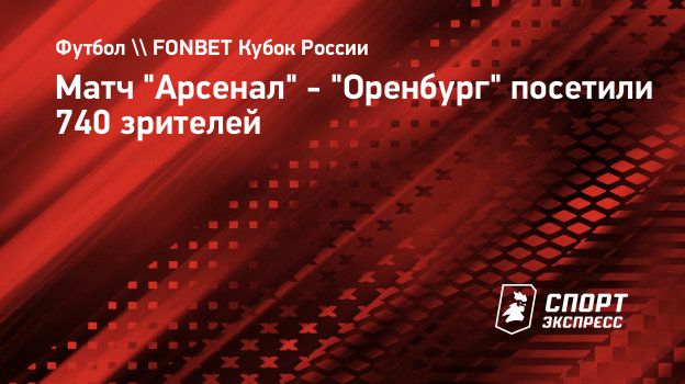 Ответный матч 1/4 финала Олимп-Кубка России "Арсенал" - "Оренбург" (1:1) посетили 740 зрителей, сообщает официальный сайт РПЛ. Комиссия РФС не допустила к проведению матча стадион в Туле, и игру пришлось перенести на "Арену Химки".