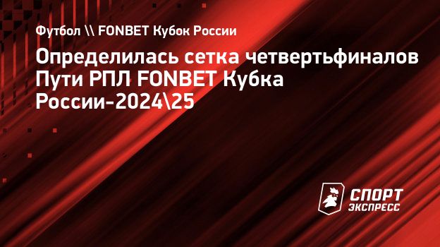 Определилась сетка четвертьфиналов Пути РПЛ FONBET Кубка России-2024/25