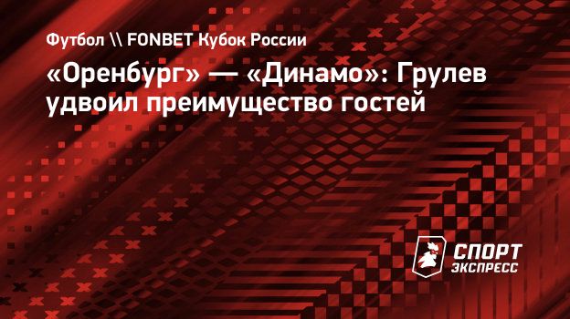 Нападающий «Динамо» Вячеслав Грулев забил второй гол в матче Пути РПЛ Кубка России с «Оренбургом» (2:0, второй тайм). Футболист отличился на 59-й минуте.