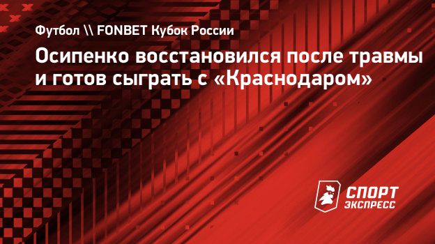Осипенко восстановился после травмы и готов сыграть с «Краснодаром»