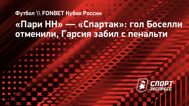«Пари НН» — «Спартак»: гол Боселли отменили, Гарсия забил с пенальти