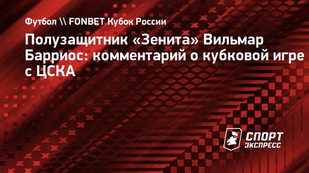 Полузащитник «Зенита» Вильмар Барриос прокомментировал ничью с ЦСКА (1:1) в первом матче финала Пути РПЛ FONBET Кубка России.
