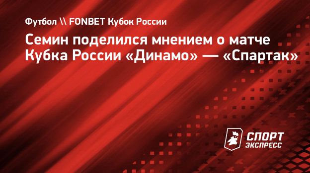 Бывший главный тренер «Локомотива» Юрий Семин поделился эмоциями от матча второй стадии 1/2 финала Пути регионов FONBET Кубка России между «Динамо» и «Спартаком» (0:2).