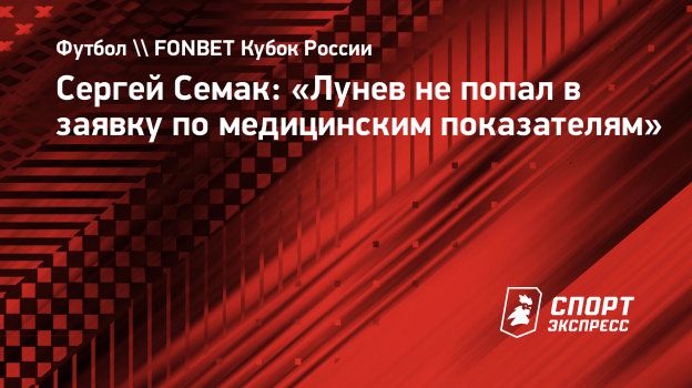 Сергей Семак: «Лунев не попал в заявку по медицинским показателям»