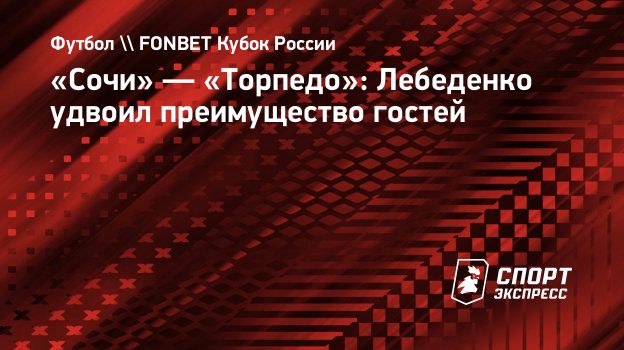 «Сочи» — «Торпедо»: Лебеденко удвоил преимущество гостей