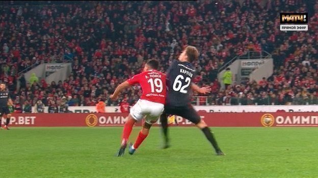 Судья неверно оценил единоборство нападающего с защитником Вадимом Карповым и решил применить дисциплинарную санкцию, хотя ему следовало ограничиться назначением штрафного удара.